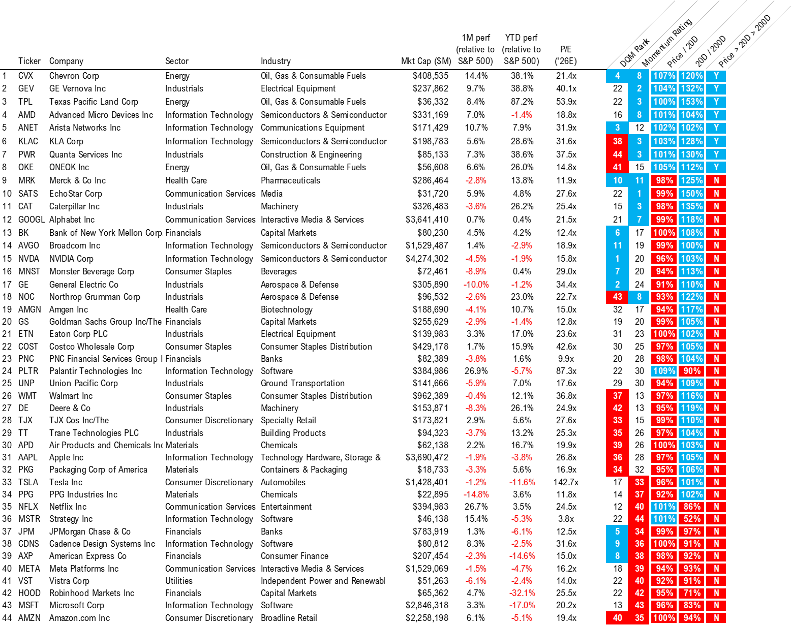 The Current Large-cap Core List as of 3/23/2026 is as follows: